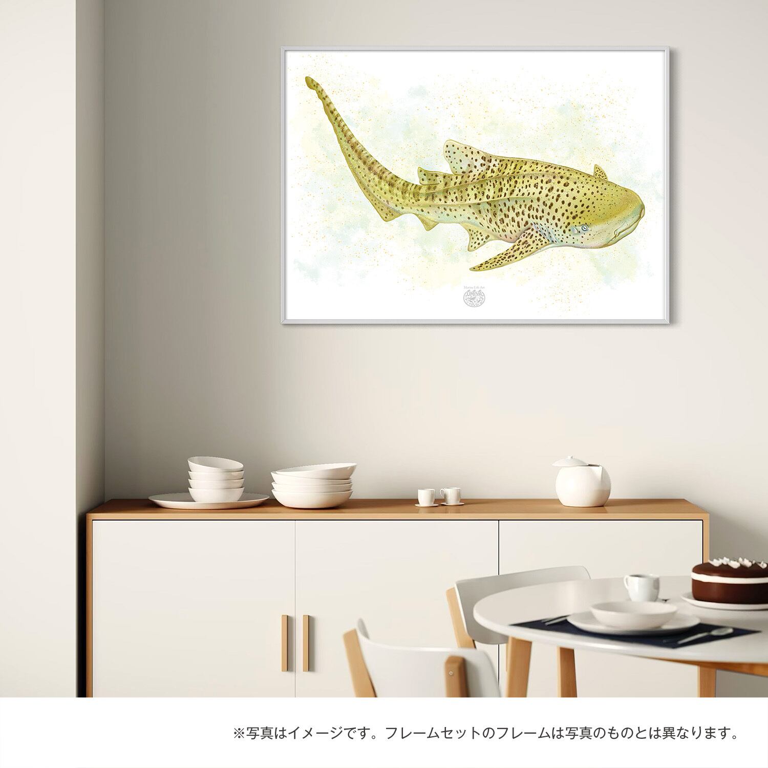 トラフザメを描いた、お魚アートポスターです。 海やアートを身近に感じたい方のインテリアにぴったりの一枚。 リビングや書斎、ベッドルームなどの空間に、海の癒やしをそっとお届けします。 こちらの商品はポスター単体のみ、またはポスターとフレームとのセット購入からお選びいただけます。 オプションからサイズとフレームの色をお選びください。 フレームとのセット購入で付属されるフレームは、軽量で扱いやすく、縦横どちらでも飾れる仕様。 お部屋の雰囲気に合わせてホワイト/ブラックの2色から選択可能です。 ※商品画像はイメージのため、色味など実物とは多少異なります。 ※価格はサイズによって変動します。 【ポスター仕様】 ■材質 マット紙 ■サイズ A3:297mm × 420mm A2:420mm × 594mm A1:594mm × 841mm A0:841mm × 1189mm B2:515×728mm B1:728×1030mm B0:1030×1456mm 【フレーム仕様】 ■材質 アルミ製 ■付属品 ・吊りヒモ ・表面保護用PETフィルム ■本体サイズ/重量 A3:301mm×424mm/370g A2:424mm×598mm/590g A1:598mm×845mm/1100g A0:845mm×1193mm/2330g B2:519mm×732mm/820g B1:732mm×1034mm/1500g B0:1034mm×1460mm/3300g 【お届けについて】 ●商品は受注生産となっております。ご入金確認後8日〜15日程度(土日祝を除く)で発送致します。 ●年末年始、ゴールデンウィークなどの連休にご注文頂いた場合、通常より1週間程度のお時間を頂戴致します。 ●発送は工場からの直送になります。 ●お客様の都合によるご注文のキャンセル・返品・交換を承ることはできません。 ●当店で商品の到着日を指定する事はできません。宅配ボックスを利用するなどお客様でご対応お願い致します。