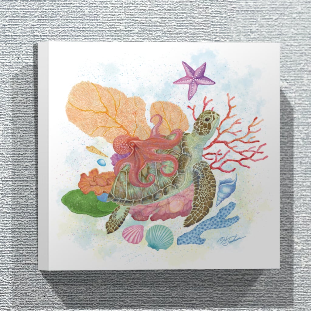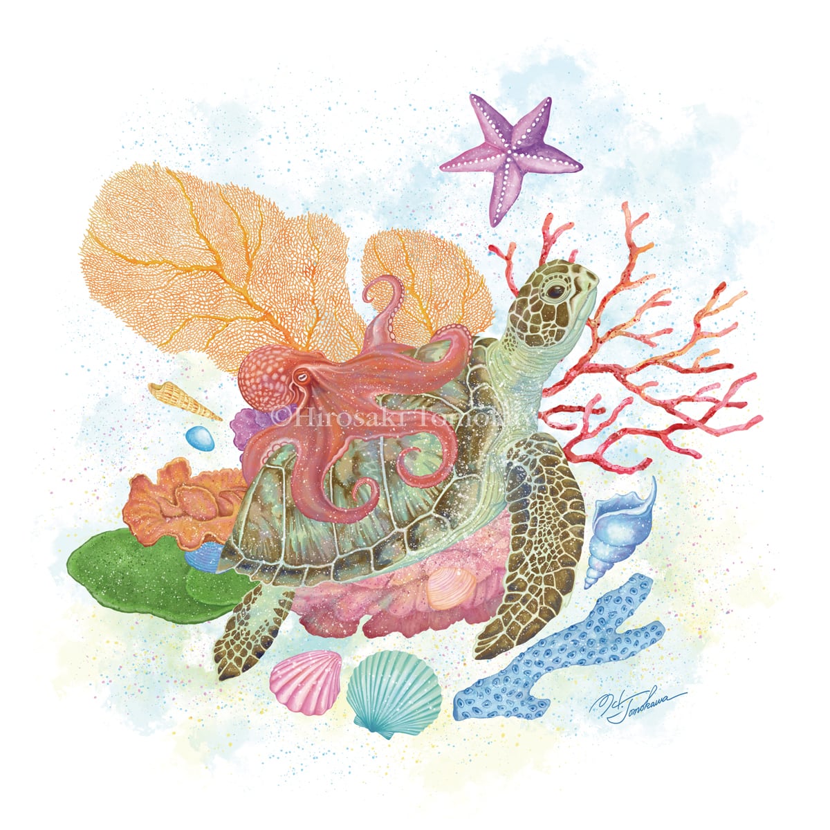のんびり泳ぐウミガメの背中に乗ったタコの微笑ましいひととき。 心がゆるむ、癒しの海のワンシーンプリントした、おしゃれでかわいいファブリックパネルです。 気軽に飾れる30×30cmサイズで、お部屋のアクセントに最適です! 【注意点】 ※サンプル画像は完成イメージのため、色味など実物とは多少異なります。 【素材】 ファブリック(ポリエステル)生地 【サイズ】 W:300mm x H:300mm 厚さ:20mm