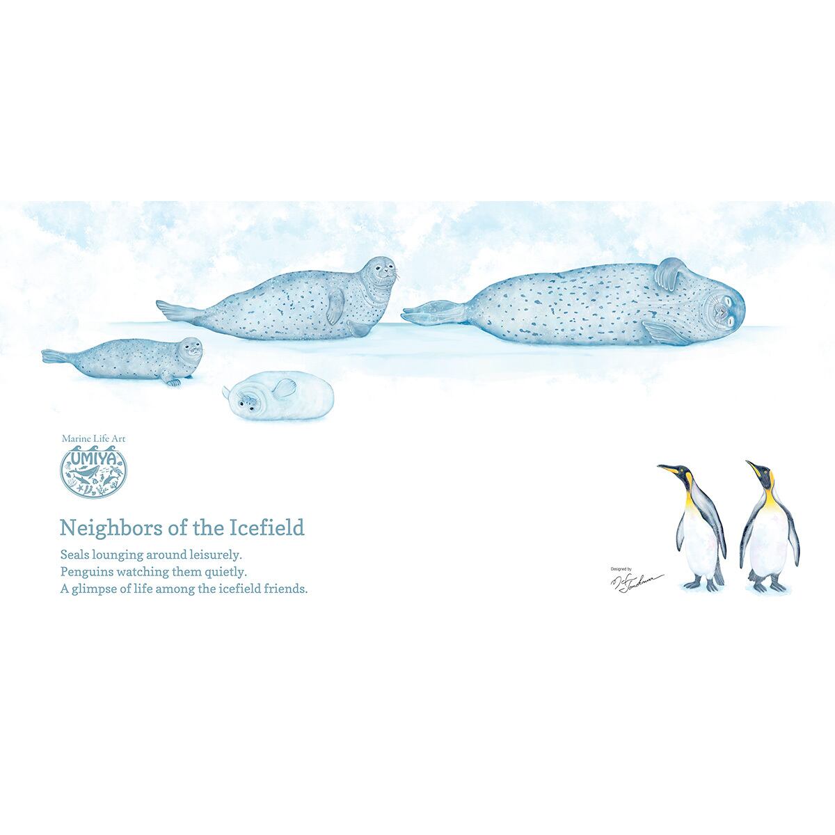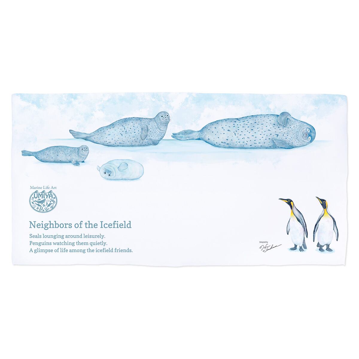 のんびりごろごろアザラシたち。 その様子を見つめるペンギンたち。 氷原の仲間たちのひとコマをプリントしたおしゃれでかわいいバスタオルです。 タオルの表面はサラッとしたフラット織りのポリエステル生地、裏面は肌触りのやさしいふんわりした素材を使用した2層構造です。 【素材】 ポリエステル95%、ナイロン5% 【サイズ(cm)】 120×60 【注意点】 ※写真はイメージのため実物の色味は多少異なります。