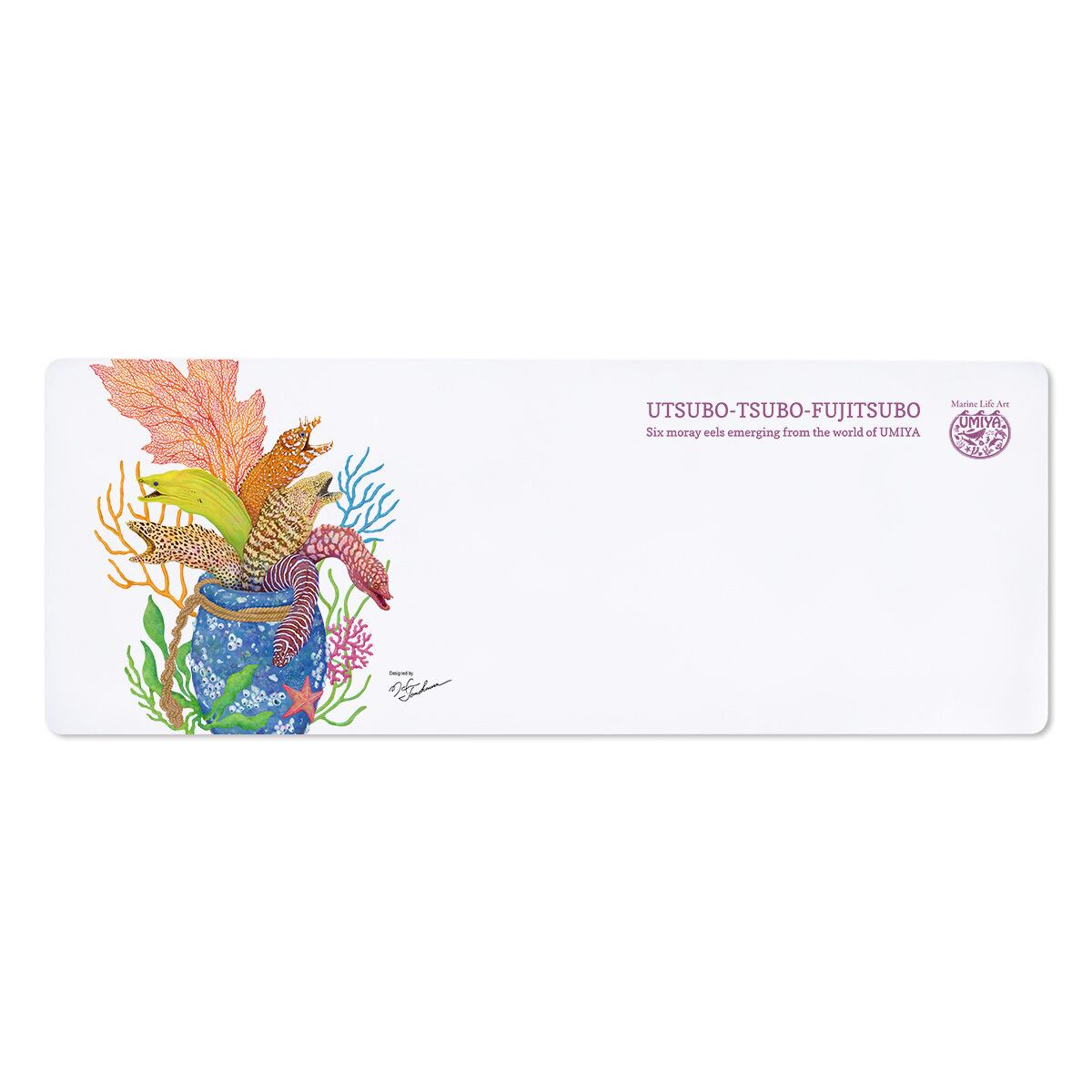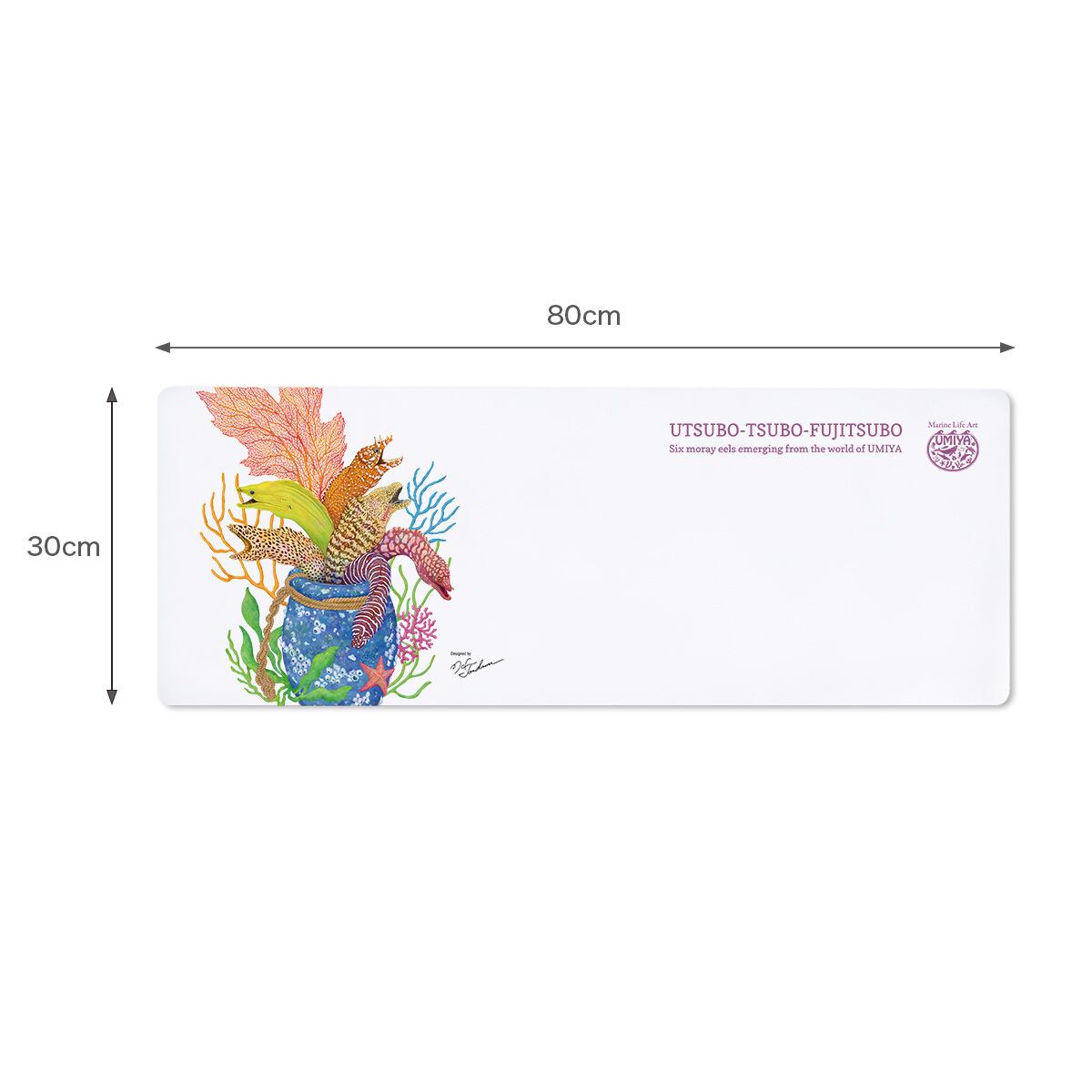 壺の中からひょっこり顔を出す6種類のウツボをプリントした、カラフルで楽しいデスクマットです。 表面はポリエステル生地で光学式のマウスに対応。 裏面は滑り止めのゴム素材となっております。 ゲーム用としてはもちろん、マルチモニターなどのPC環境の方におすすめのゲーミングマウスパッドです。 【素材】 ポリエステル(表面)/ゴム(裏面) 【サイズ】 約H300×W800mm 厚み約3mm 【注意点】 ※写真はイメージのため実物の色味は多少異なります。