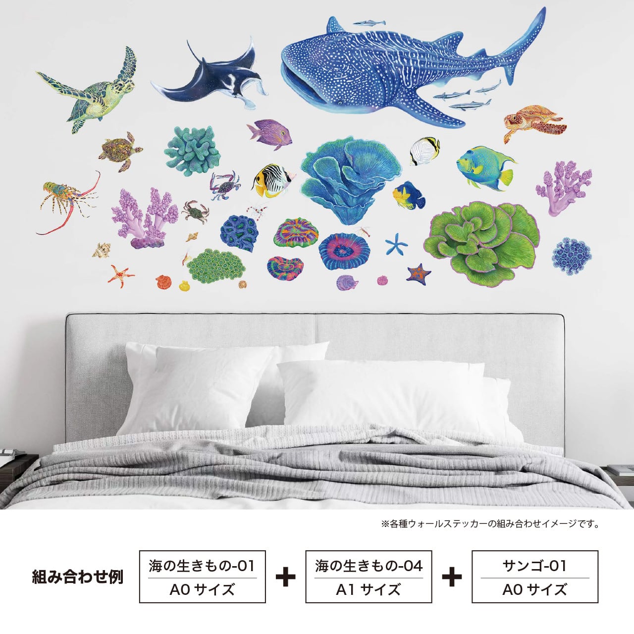お気に入りの海の生きものたちを自由に組み合わせて、自分だけの“海の景色”をデザインできるアートステッカー。