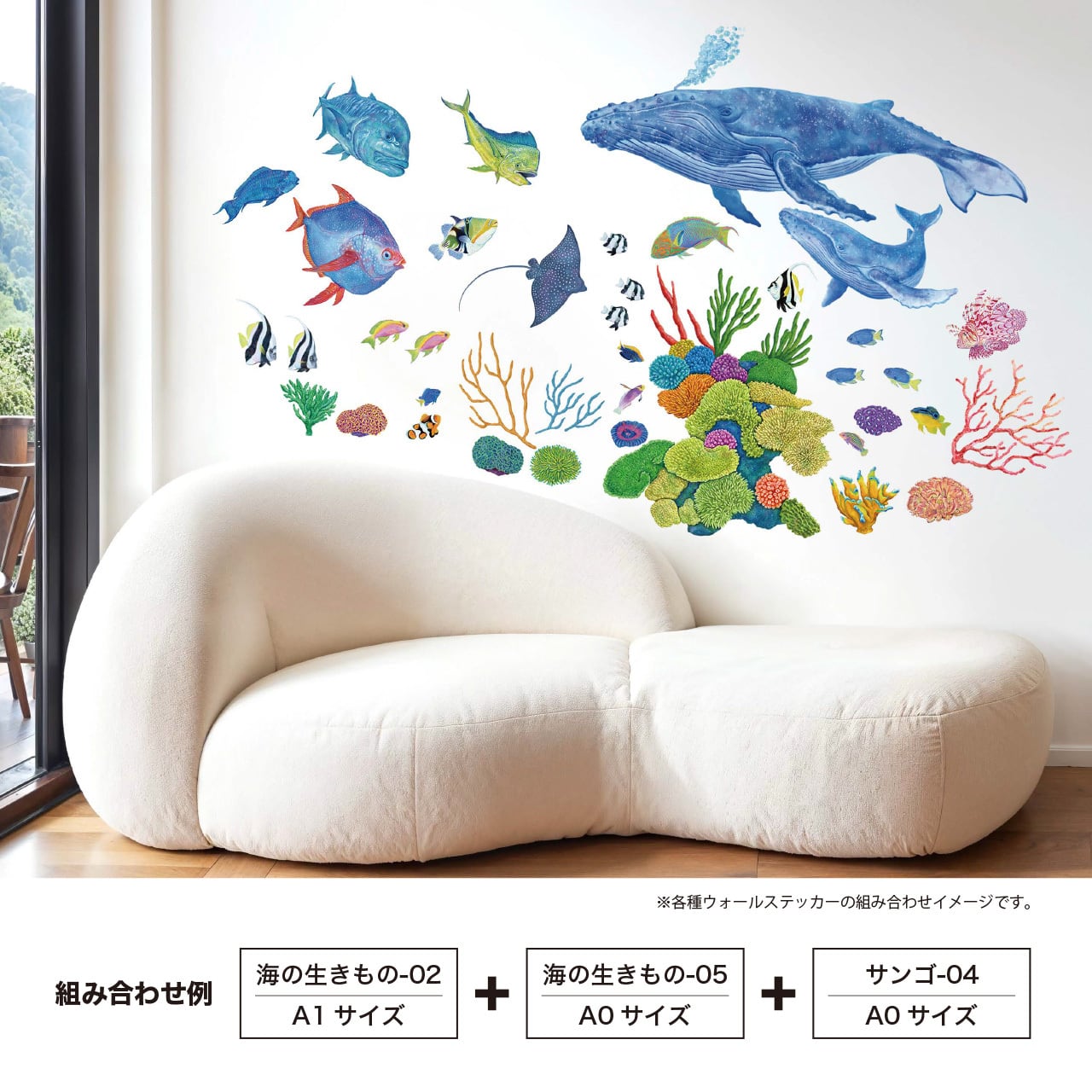 お気に入りの海の生きものたちを自由に組み合わせて、自分だけの“海の景色”をデザインできるアートステッカー。