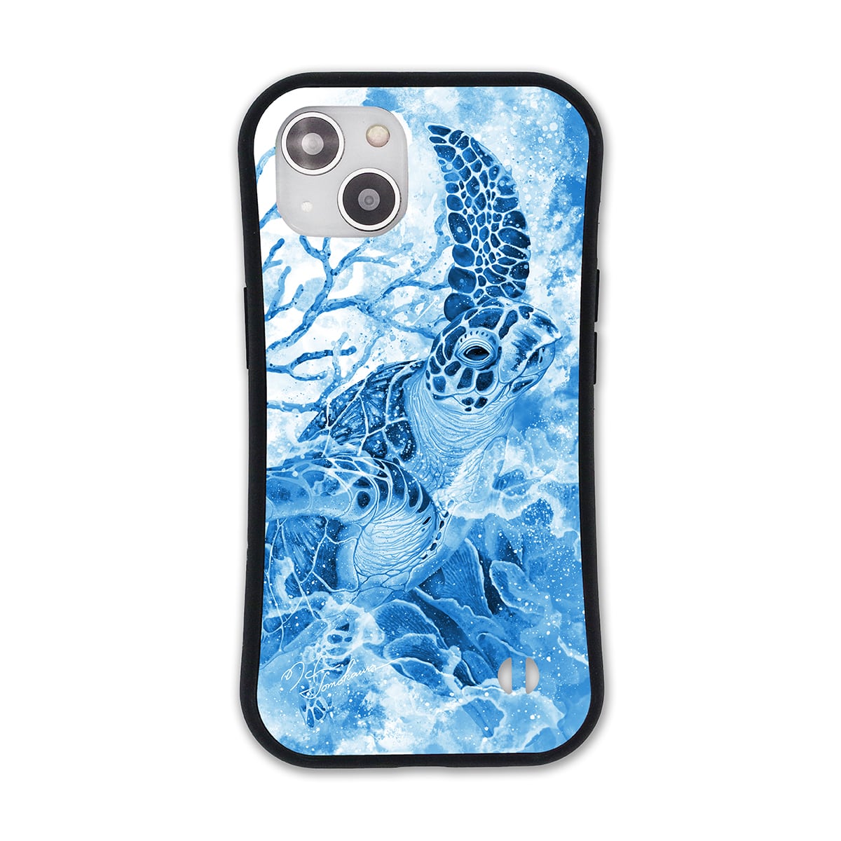 深い青の海を泳ぐウミガメを描いた耐衝撃タイプのiPhoneケースです。