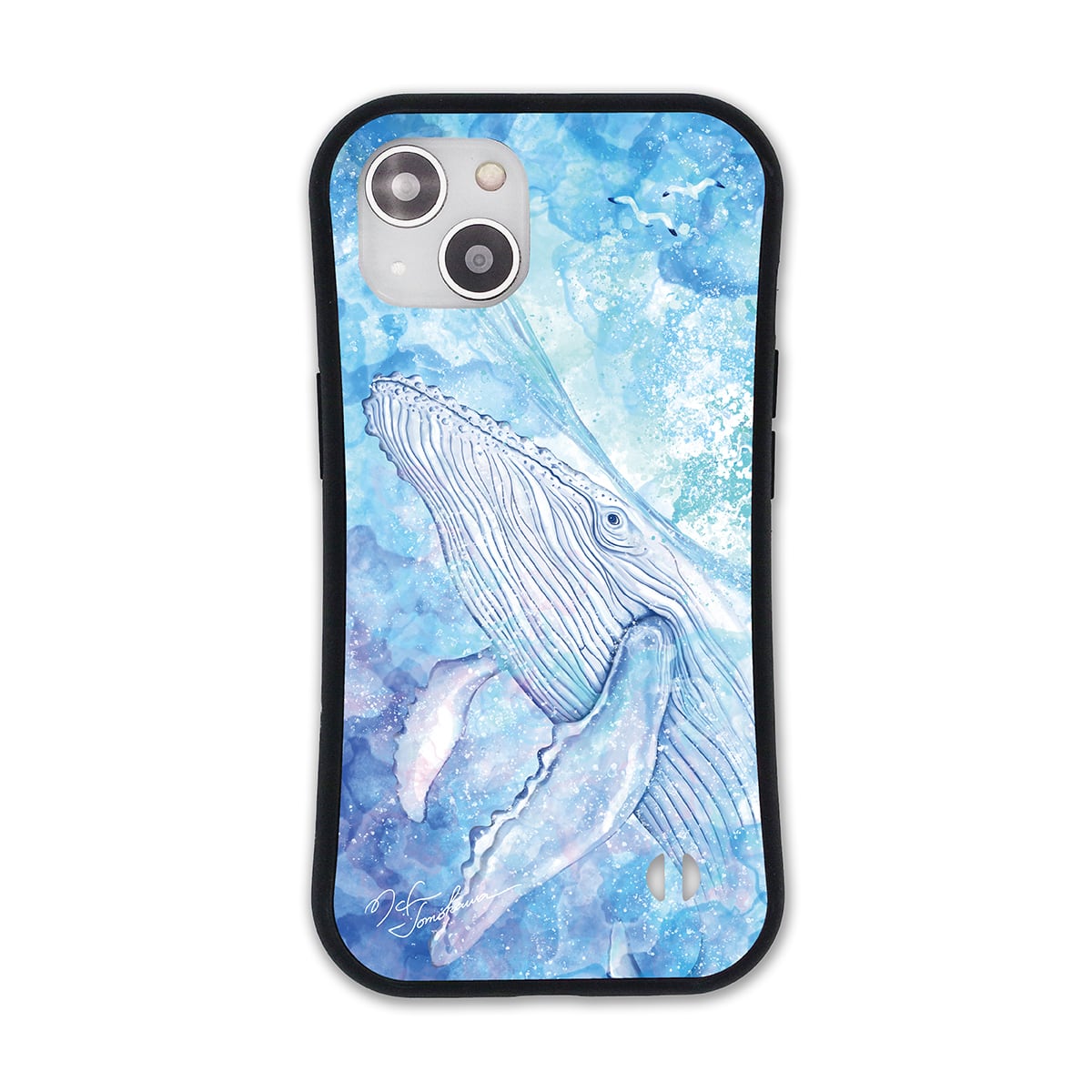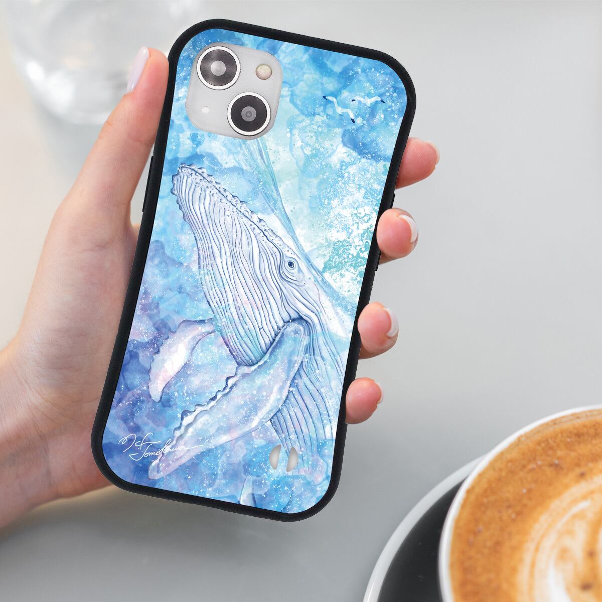 広大な青い海を泳ぐ白いクジラを描いたiPhoneケースです。