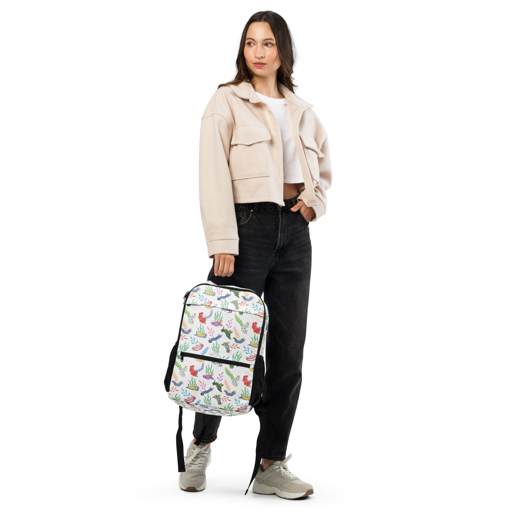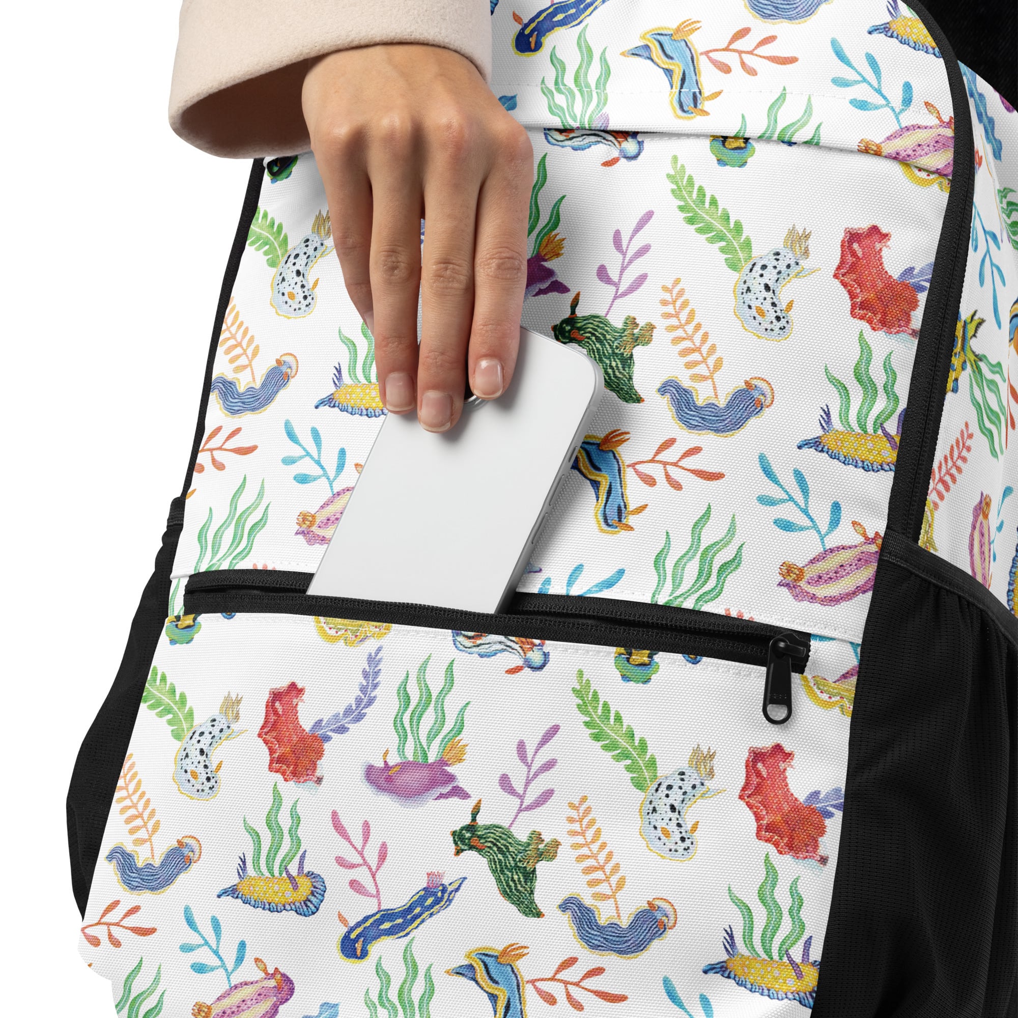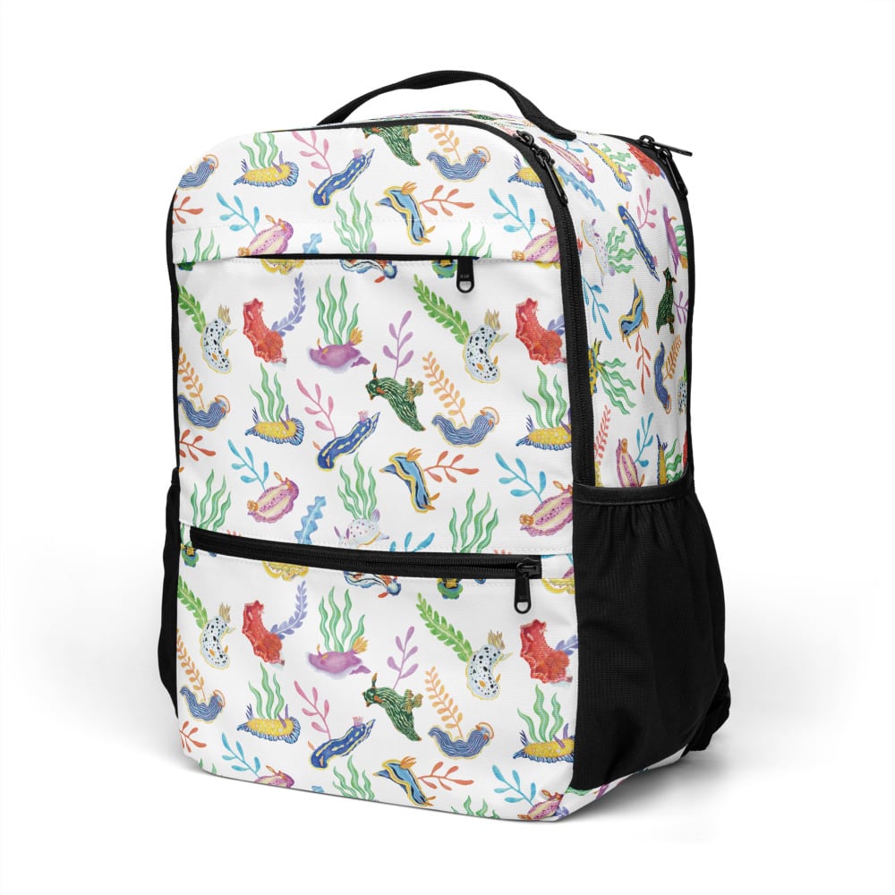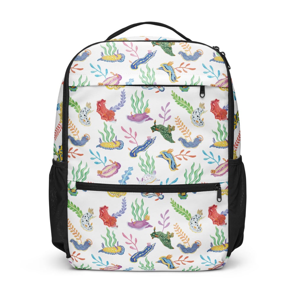 いろんなウミウシを散りばめた、遊び心のあるデザインのバックパックです。