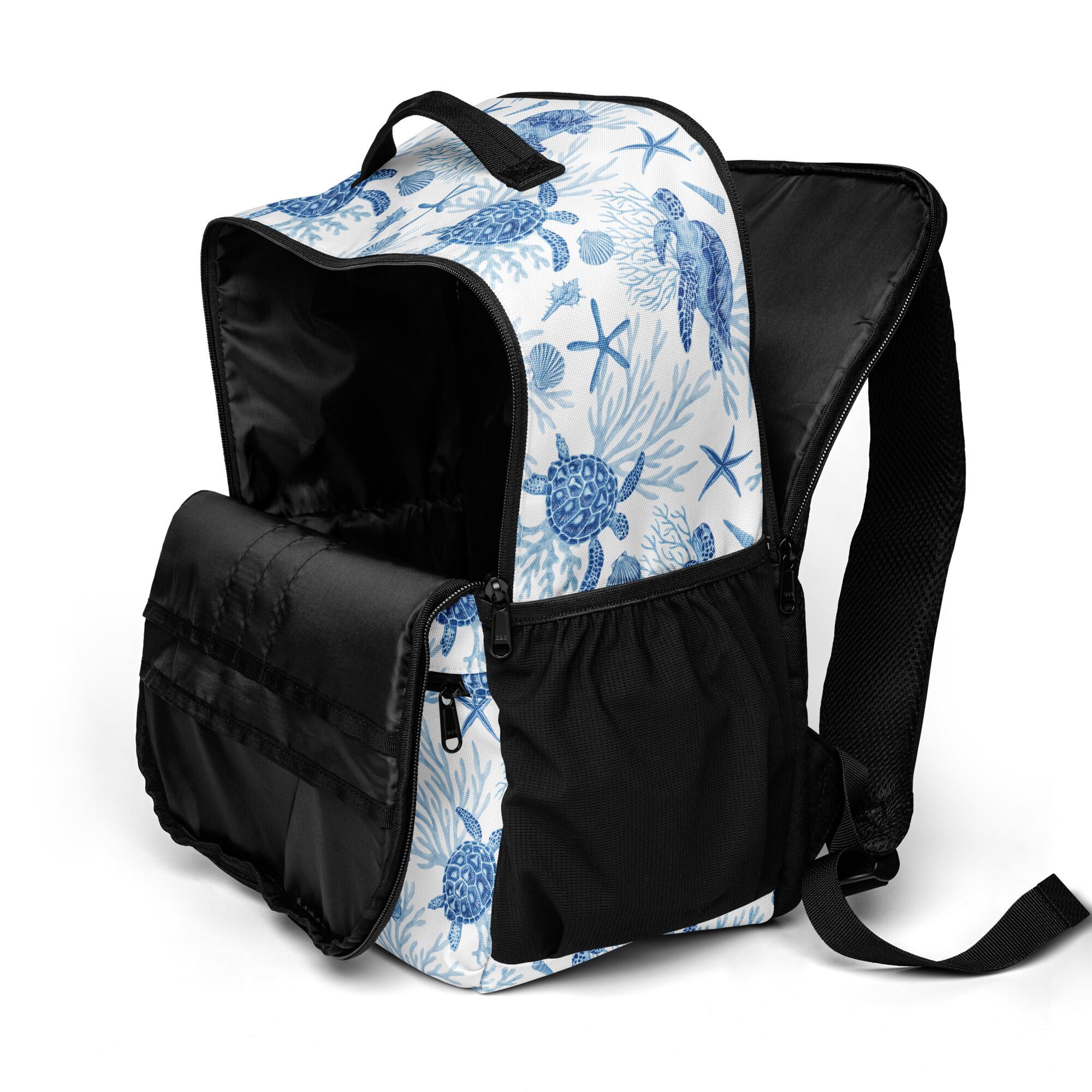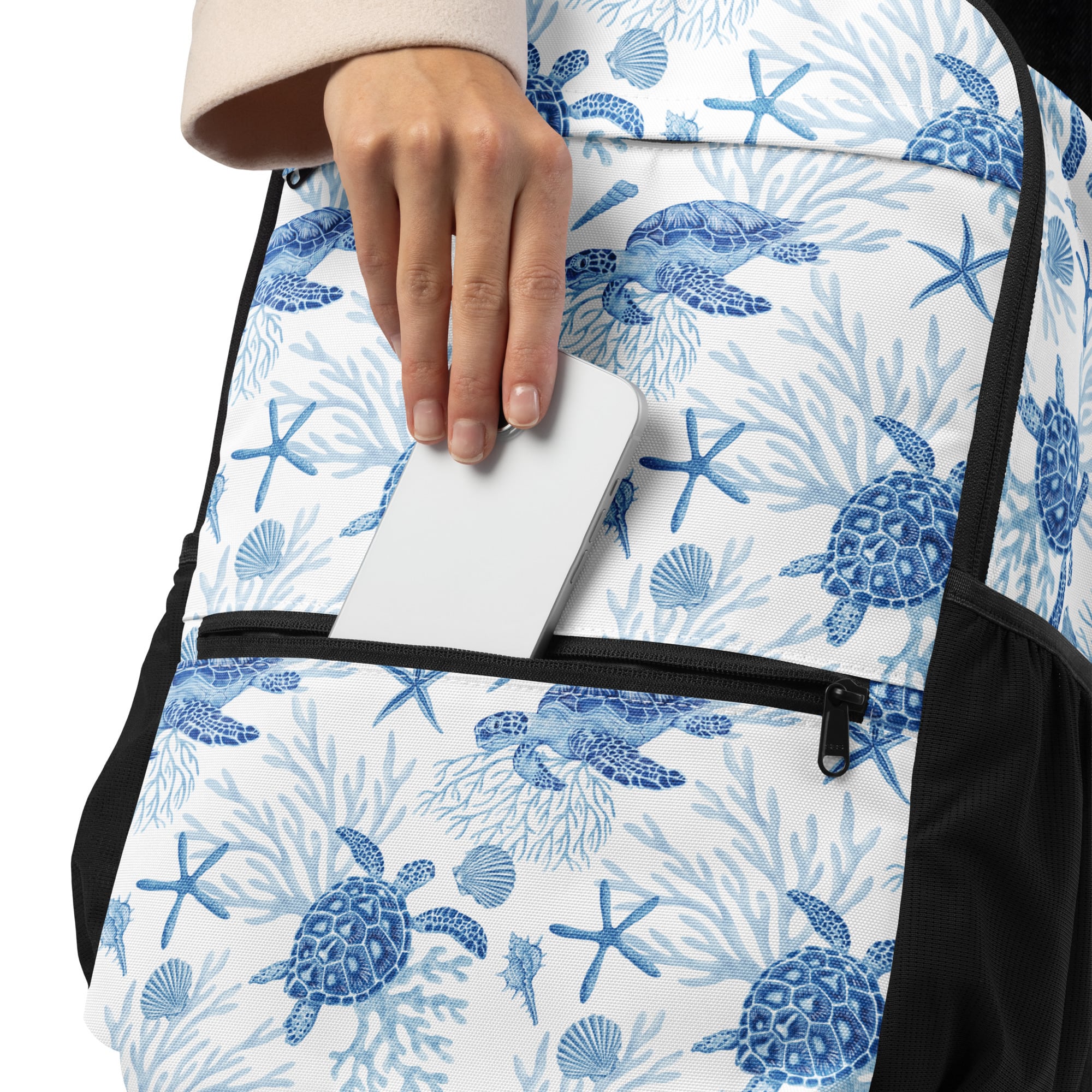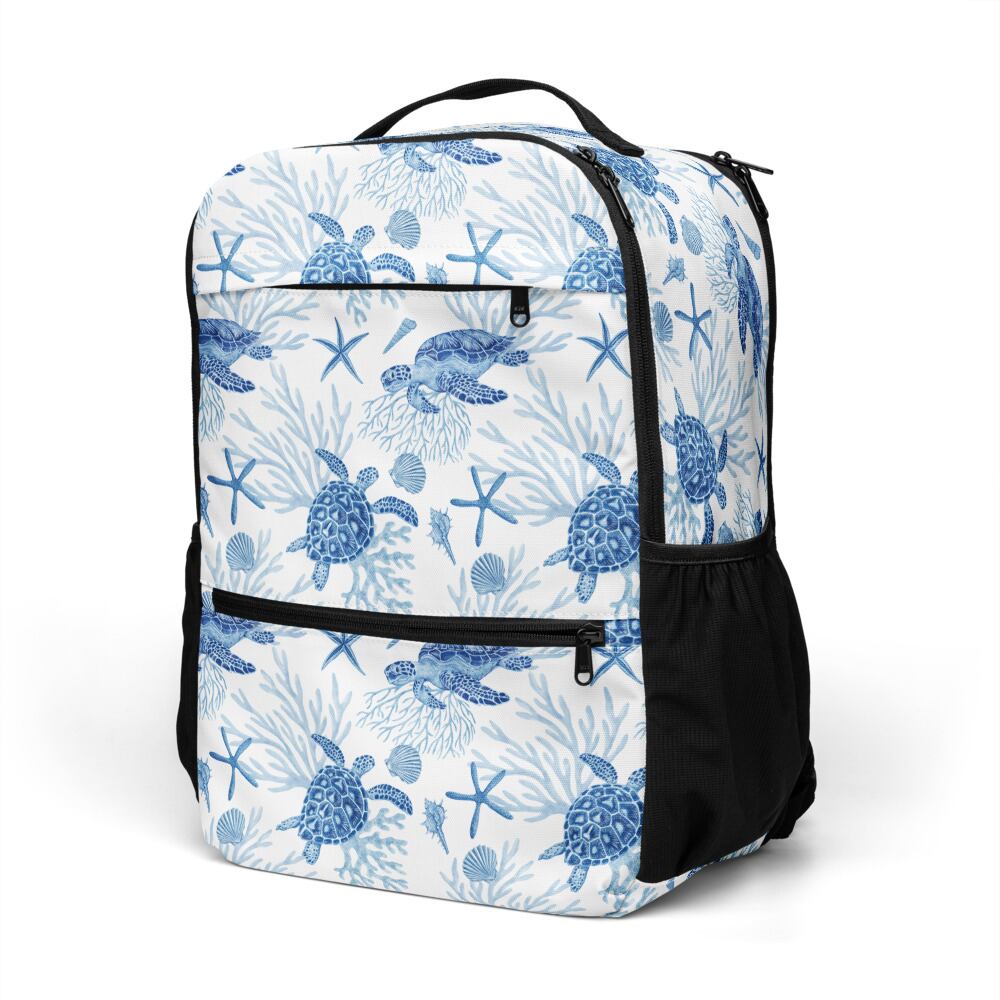 ウミガメ柄の爽やかなデザインのバックパックです。