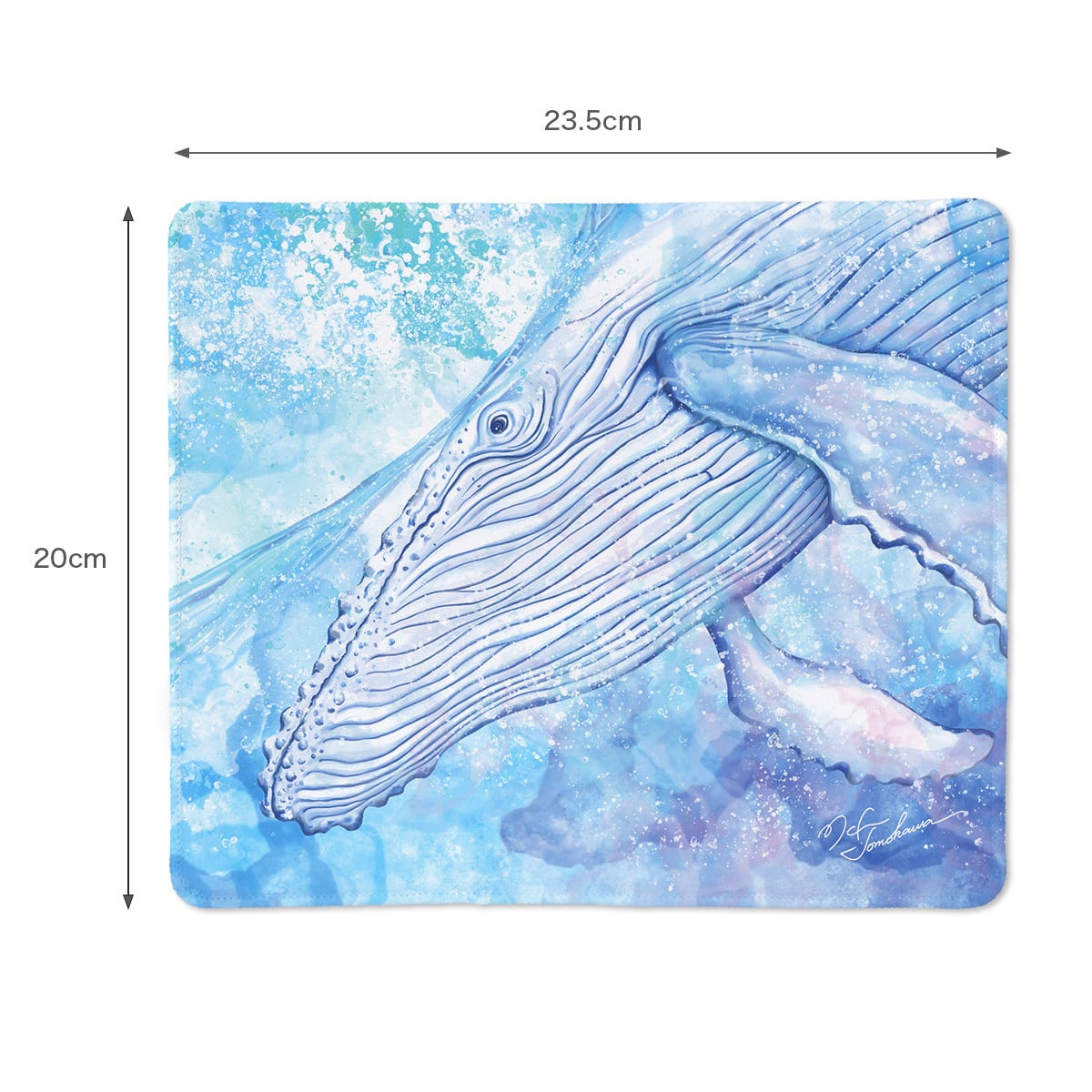 広大な青い海を泳ぐ白いクジラを描いたマウスパッドです。 透明感と爽快感のあるデザインに仕上げました。 白鯨と一緒に、日々の時間をお過ごしください。 表面はポリエステル生地で光学式のマウスに対応。 裏面は滑り止めのゴム素材となっております。 【素材】 ポリエステル(表面)/ゴム(裏面) 【サイズ】 約W235×H250mm 厚み約3mm 【注意点】 ※写真はイメージのため実物の色味は多少異なります。