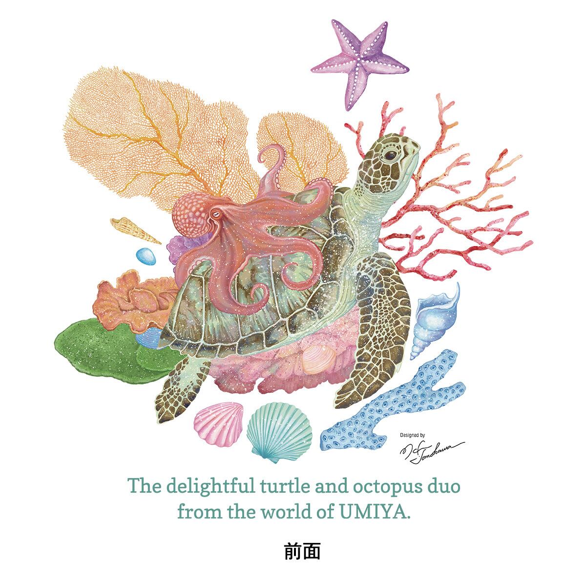 のんびり泳ぐウミガメの背中に乗ったタコの微笑ましいひととき。