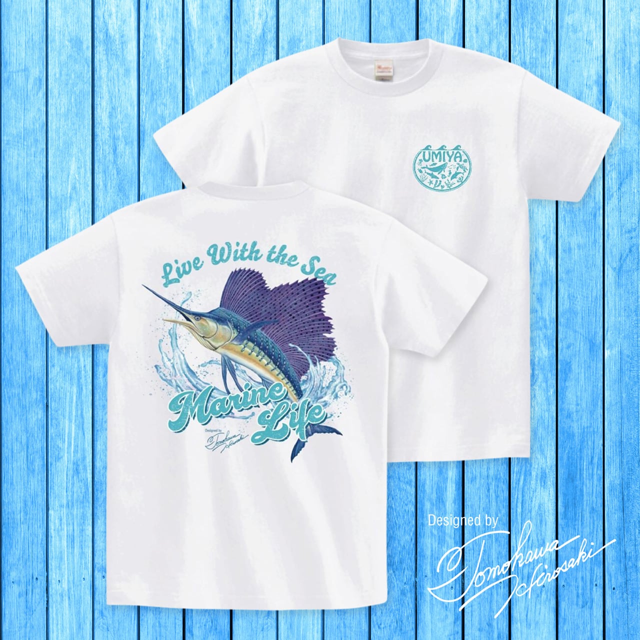 背中にバショウカジキをプリントした半袖Tシャツです。